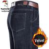 Woodpecker Men's High-Waisted Winter Fleece-Lined Stretch Jeans - Business Casual Straight-Leg Trousers