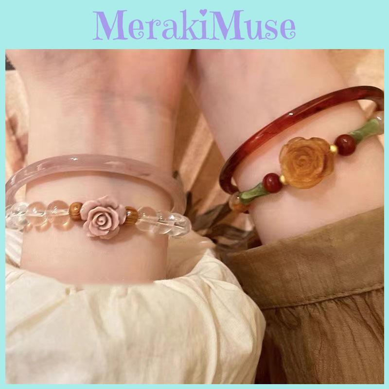 Each bracelet is meticulously fashioned by skilled artisans, ensuring that every detail reflects the highest standards of craftsmanship. The geometric shapes of these jewelry pieces add a contemporary twist to traditional elements, while the enchanting rose motif embodies romance and grace. The Rose Blossom Beaded Bracelet features delicate rose beads that dance in the light, creating a visual symphony of color and movement. Meanwhile, the Camellia Glass Bracelet boasts intricately designed camellia flowers that capture the essence of natural beauty, rendered in stunning colored glaze to evoke a sense of sophistication and allure.