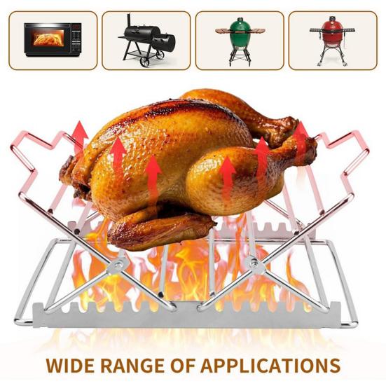 This flexibility not only enhances convenience but also improves baking precision, resulting in juicy and tender roasted chicken that's bursting with flavor. Elevate your grilling game with the roast chicken rack today!