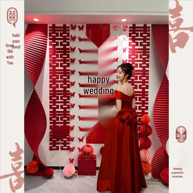 Wedding Ceremony Hanging Cloth Banner Set - Double Happiness Backdrop & Room Decor
