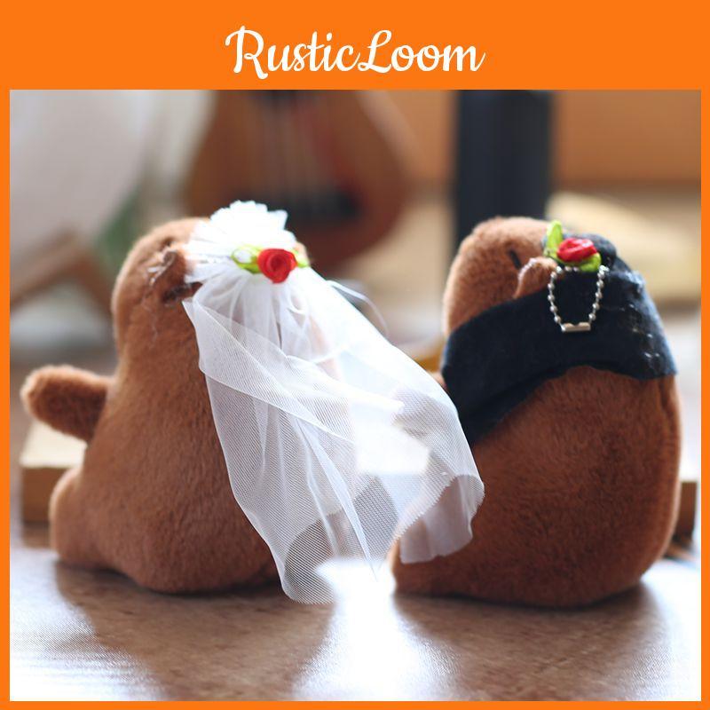 Wedding Capybara Cute With Rose Mesh Headwear Plush Fill Toy Keychain Pendant — buy products online with free worldwide shipping!
