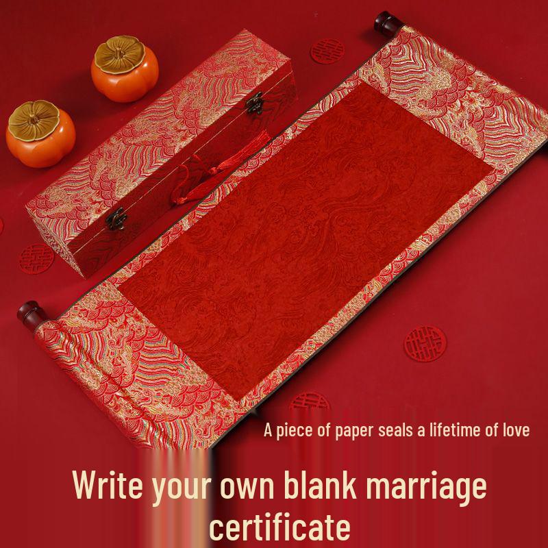Red Wedding Scroll: Handwritten Marriage Certificate Paper for Betrothal and Engagement Celebrations