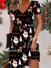 Fashion Women's V Neck Short Sleeve Christmas Snowman Printed Dress Sex Short Skirt Dresses