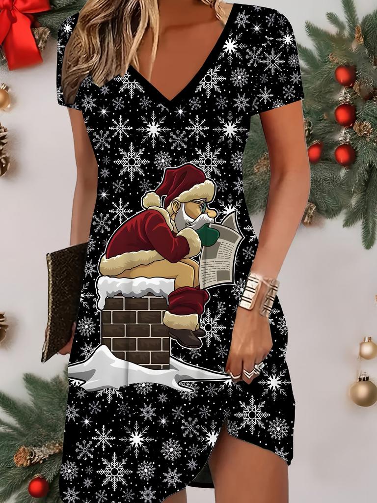 Fashion Women's V Neck Short Sleeve Christmas Snowman Printed Dress Sex Short Skirt Dresses — buy online with free worldwide shipping!