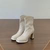 Winter Platform Thick Heel Women Ankle Boots Fashion Square Toe Zippers Shoes Female Stretch Slim Short Booties De Muje
