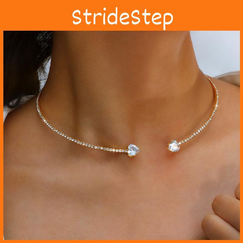 Contemporary Heart Shaped Rhinestone Choker Necklace Stylish Alloy For Women Fashion