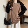 Contrast color splicing shoulder sleeves bottoming shirt women's inner cover winter loose velvet real shot long sleeves — buy online with free worldwide shipping!