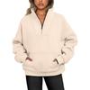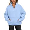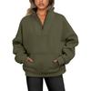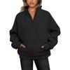 Women's Sweatshirt Stand Collar Solid Color Fashion Pocket Zipper Tops Casual Loose Fleece Ribbed Pullover