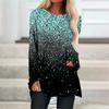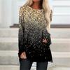 Plus Size Women Spring Glitter Printed Comfy Long Sleeve Round Collar T-shirt Casual Baggy Mid Length Tee Tops — buy online with free worldwide shipping!