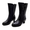 Ladies Shoes 2024 Side Zip Mid-Calf Women's Boots Keep Warm Modern Boots Women Bow Tie Fringe Round Toe Med Heel PU Shoes Women — buy online with free worldwide shipping!