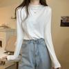 Semi-turtleneck Bottoming Shirt Women's Black Slim-fitting Sweater Inside White Thin Knitted Sweater Autumn and Winter Top