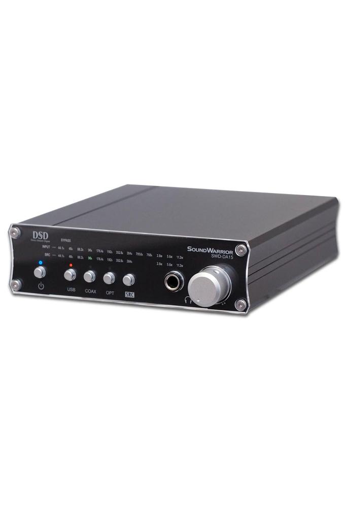 The D/A converter (Digital to Analog Converter) is a crucial component in digital audio, with its quality determining the quality of an audio set. The SWD-DA15 is a remodeled, more affordable version of the SWD-DA20, developed as the core model of the SOUNDWARRIOR desktop audio series. It employs the ES9018K2M DAC IC and is compatible with most currently available high-resolution audio sources (linear PCM 44.1k-384kHz/32bit, DSD 2.8M-11.2MHz). This unit was developed with a focus on the fundamental function of a D/A converter: converting input audio data to analog and outputting it with the highest possible quality. The unit also comes equipped with features that allow users to enjoy a variety of sound changes to suit their preferences. For example, the built-in SRC allows for upsampling of input audio data before playback, and real-time conversion of each format, such as PCM to DSD and DSD to PCM.