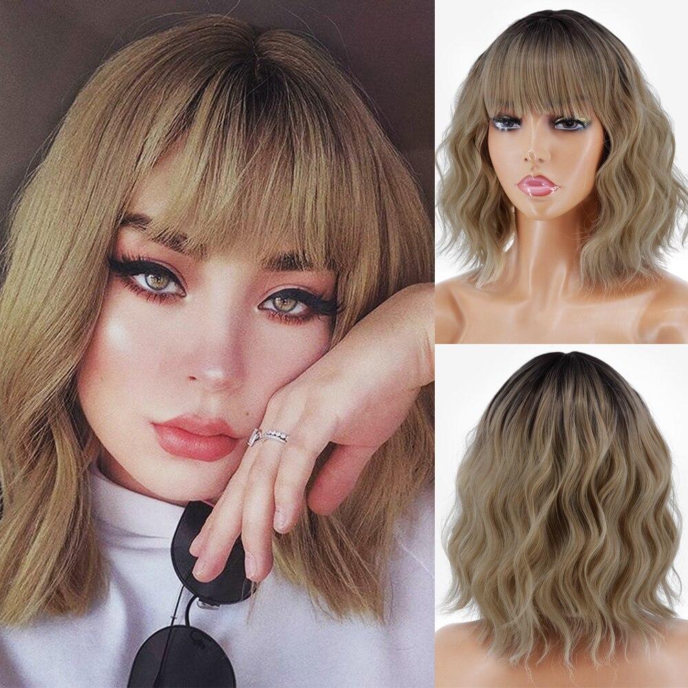 Women Short Platinum Blonde Ombre Wavy Wig with Bangs for Women Cosplay Party Wigs Natural Looking for Daily Use — buy online with free worldwide shipping!