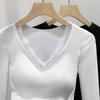 German Velvet Bottoming Shirt Women's New Lace Splicing Long-sleeved Inner Cover Autumn Clothes Velvet Thermal Underwear with Chest Pads