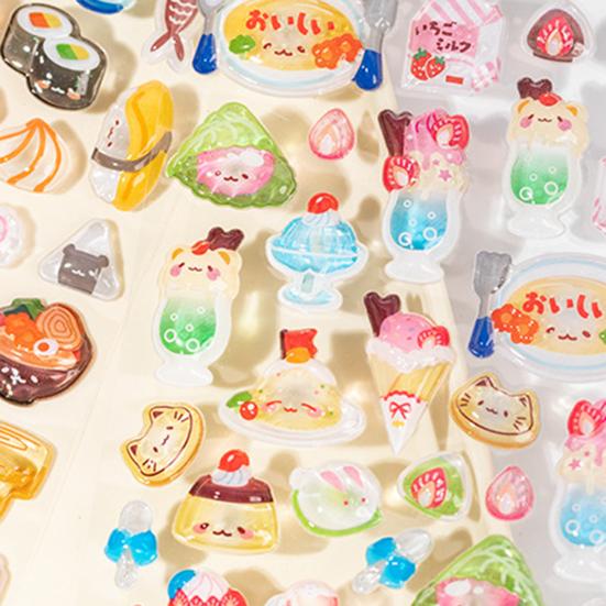 Enhance your creativity with these versatile 3D stickers! Perfect for customizing mobile phone cases, diaries, stationery, and more, these stickers add a touch of fun and sophistication to everyday items. Indulge in a wide array of food themes, from sushi to desserts, ice creams to candies. Each sticker boasts intricate details and lifelike designs, catering to both food enthusiasts and art lovers alike. Experience the unique 3D relief texture that brings these stickers to life. With a crystal-clear finish and tactile bumps, these stickers offer a visual and sensory delight like no other.