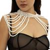 Elegant Pearls Tassels Body Chain Hand Beading Collar Necklace for Lady Pearls Chain Necklace for Party/Club