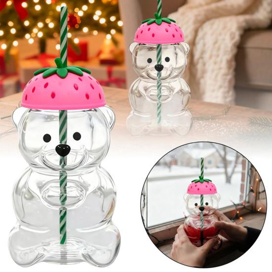 Unique Teddy Bear Glass Straw Feature: Equipped with a charming teddy bear-shaped glass straw, this glass straw cup adds a playful yet functional element to your drinkware. The reusable straw enhances sipping comfort while being easy to clean, making it perfect for kids and adults alike.