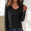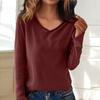 Women's Fashion Casual V-neck Warm Knitted Sweater Solid Color Long-sleeved Top