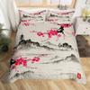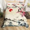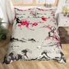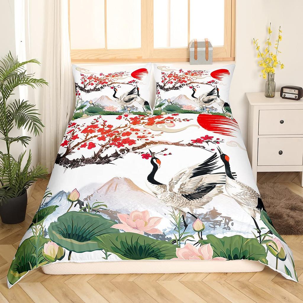 Crane Bedding Set Girl Cherry Blooming Fuji Mountain Sun Duvet Cover Kids Women Lotus Floral Comforter Cover Watercolor Decor