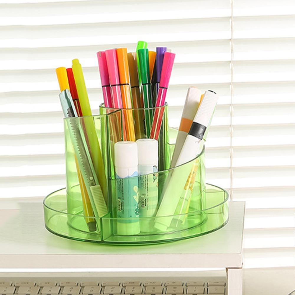 Simple Makeup Brushes Holder 360°Rotating Stationery Organizer Pen Storage Box Student
