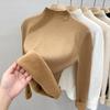 One-piece Fleece Fabric Solid Color Fleece Thickened Bottoming Shirt Women's Autumn and Winter with Semi-turtleneck Knitted Sweater
