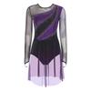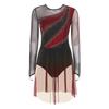 Womens Figure Skating Dress Contrast Color Rhinestones Gradient Mesh Skirt One Piece Leotard