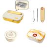 4/5 Grids Portable Bento Box With Bowl & Cutlery 304 Stainless Steel Divided Lunch Box Microwave Heatable Lunch Container Set