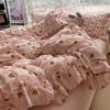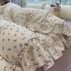 Korean Style Princess Floral Bedding Set Washed Cotton Vintage French Pastoral Flowers Lace Ruffles Duvet Cover Set Pillowcase