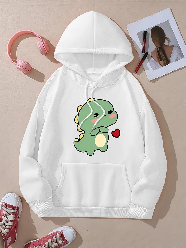 2025 Women's Autumn Winter Cute Heart Shaped Dinosaur Printed Top Casual Sweatshirt Women Round Neck Comfortable Clothing — buy online with free worldwide shipping!