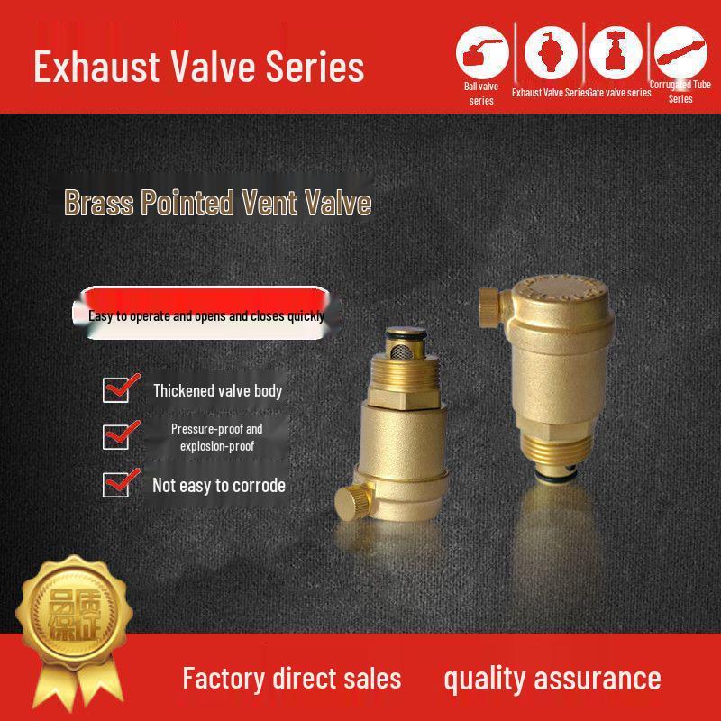 Thickened Brass Automatic Quick Exhaust Valve with Weighted Pointed Vent, Threaded Fittings 1/2", 3/4", 1