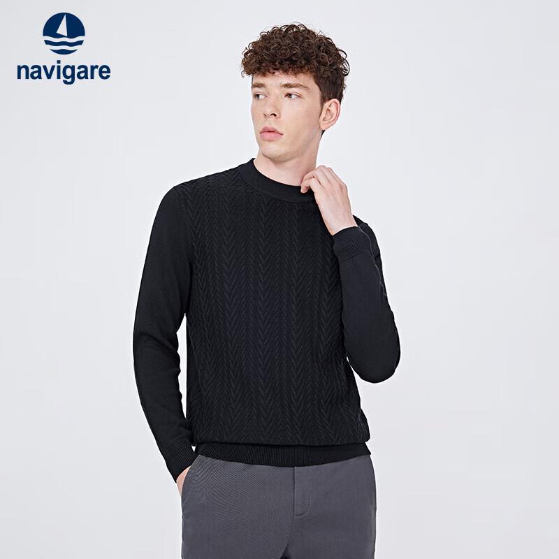 Navigare Men's Antibacterial Cable Knit Round Neck Sweater