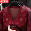 Hengyuanxiang Men's Pure Wool Jacquard Cardigan Sweater