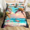 Chic Flamingo Duvet Cover Queen Beach Theme Tropical Animal Bedding Set, Coastal Sunset Comforter Cover Cute Wildlife Bed Set — buy online with free worldwide shipping!