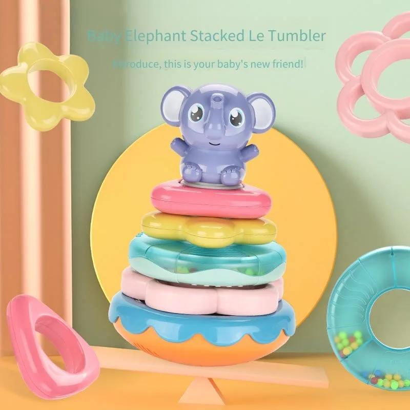 Baby & Infant Puzzle Toy Gift-Children's Electric Elephant Stacking Joy Tumbler Fun Cash Register & Early Education Learning Toy