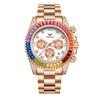 Fashion New Top Brand Business Gold Watch Waterproof Solid Core Fine Steel Band Rainbow Drill Men's Watch