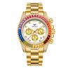 Fashion New Top Brand Business Gold Watch Waterproof Solid Core Fine Steel Band Rainbow Drill Men's Watch — buy online with free worldwide shipping!