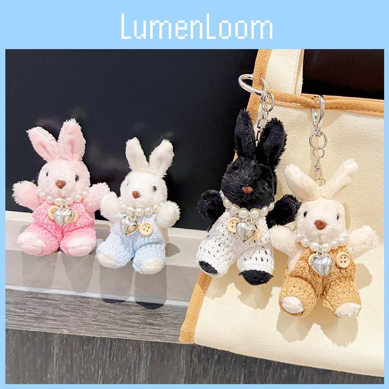 Each keychain is meticulously handmade, ensuring that every piece is unique and imbued with a touch of love. The bunny is adorned with a delicate pearl chain that adds an element of sophistication, bridging the gap between casual and chic. Whether you're looking to jazz up your handbag, brighten your keyring, or simply add a dash of cuteness to your everyday essentials, this keychain fits the bill perfectly. Its soft, plush material makes it a tactile delight, inviting you to reach out and touch it time and again.