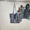 British Style Autumn and Winter Woolen Plaid Double-sided Bag Fresh College Style Shoulder Bag Large Capacity Lazy Style Tote Bag Women