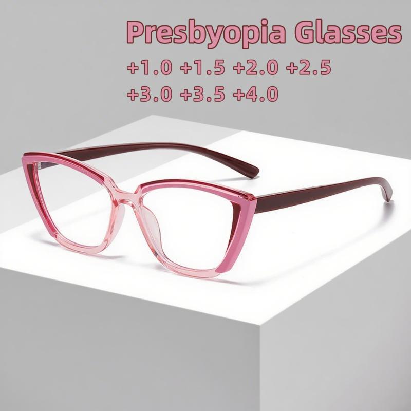 Personalized Retro Color Blocked Cat Eye Presbyopia Glasses New Fashionable High-Definition Anti Blue Light Glasses Unisex — buy online with free worldwide shipping!