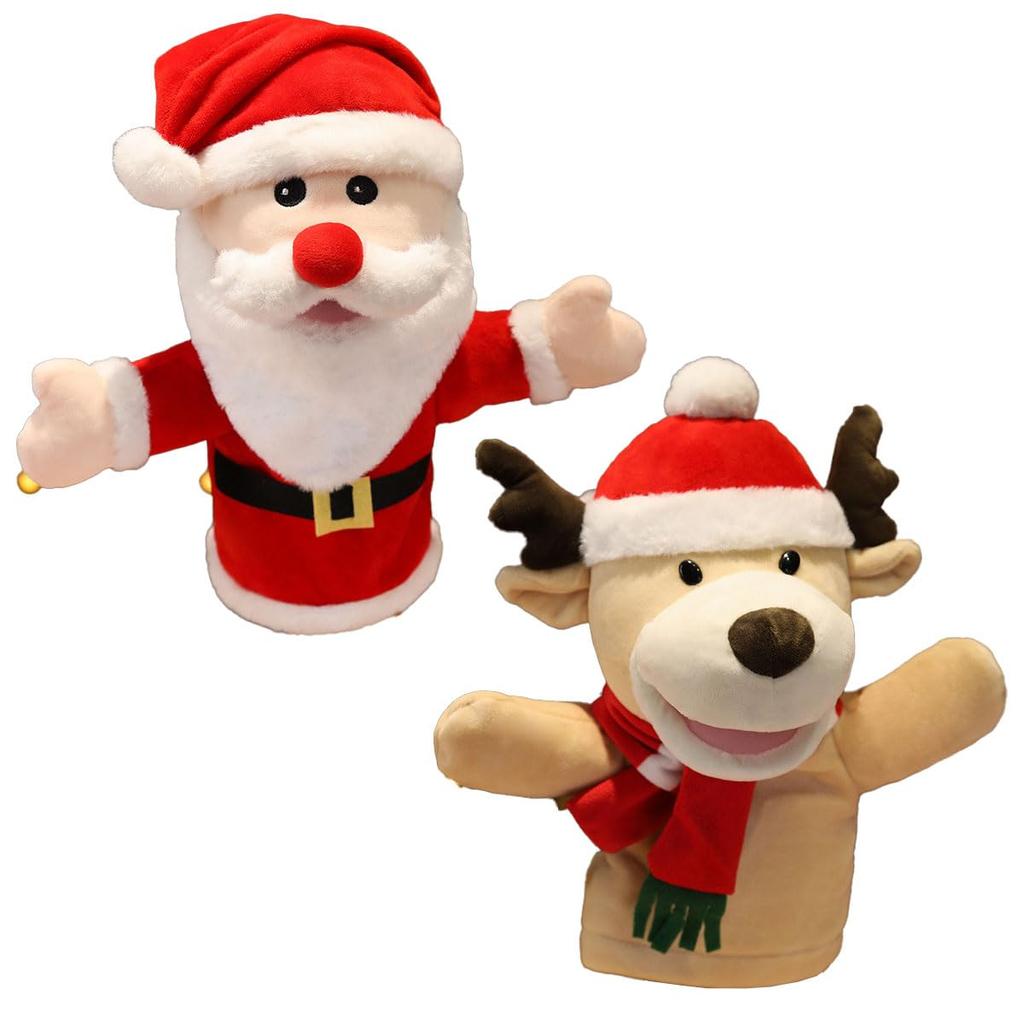 - A Christmas puppet doll that can be worn in the hand. - Made of fluffy material, it feels as comfortable as a stuffed animal. - Just the right size, it's easy to use and carry. - A two-piece set that parents and children can play with. - It's also cute as an interior decoration.