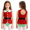 Kids Girls Christmas Santa Elf Costumes Candy Cane Striped Sequins Dance Leotard Xmas Skating Bodysuit