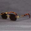 Retro Frameless Men'S Driving Sunglasses Green Crystal Stone Cycling Goggles Leopard Print Outdoor Sun Glasses Uv400 Eyewear