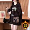 Thick Velvet Mid-length Sweatshirt for Women In Autumn and Winter Versatile Pocket Splicing Top