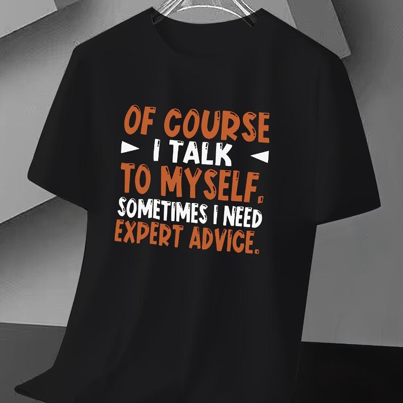 Of Course I Talk To Myself Text Print T-Shirt,Lightweight Summer T-Shirt Breathable Cool, Comfortable Wear