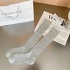 Women's White Ballet Style Ribbon Bow Calf Socks - 2025 Spring/Summer Trendy Thin Scrunch Socks