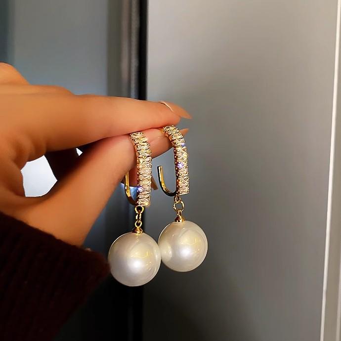 S925 Silver Large Pearl Earrings - Women's Fashionable Studs, Elegant High-End Light Luxury Style. — buy online with free worldwide shipping!