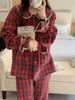 Korean Spring & Autumn Plaid Lace Peter Pan Collar Pajamas - Loose Couple Long Sleeve Homewear Set