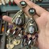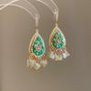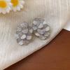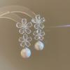 Silver Needle with Diamonds Flower Stripes Pearl Stud Earrings Medieval Vintage Retro Earrings Light Luxury Niche Earrings