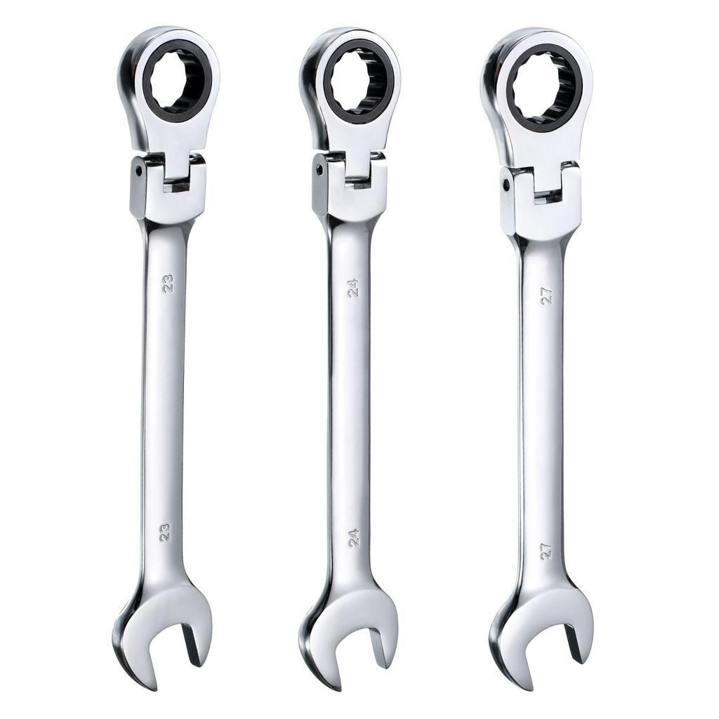 MATERIAL - The gears of this flex head ratchet combination wrench are made of 50Bv 30 chrome vanadium steel, and the wrench is made of 45 carbon steel. Overall, it offers high strength, toughness, wear resistance, and torque. The surface is polished and chrome plated for corrosion and rust resistance.