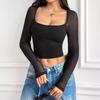 Women's Fashion Casual Spring Autumn Solid Color Print Long Sleeve Square Collar Blouses & Shirts — buy online with free worldwide shipping!